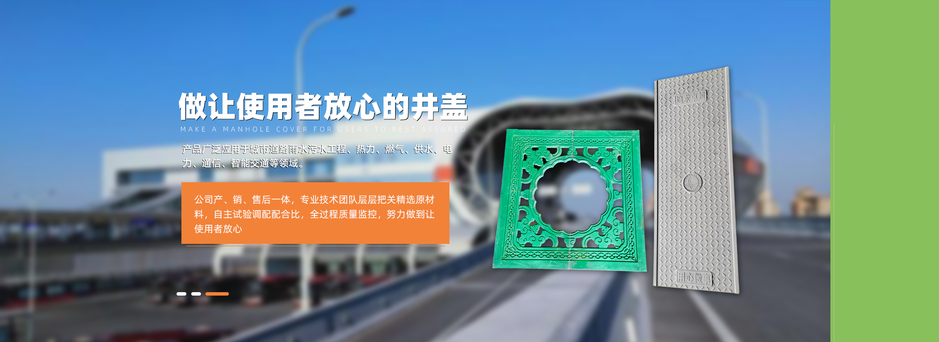 復合井蓋廠家:淄博高分子制品有限公司主營高分子井蓋、復合樹脂井蓋等產品,其位于華東地區工業重鎮、齊國古都、山東省淄博市臨淄區朱臺鎮工業園,工廠始建于2002年,于2015年公司化改制,是山東省早一批從事研究生產高分子新型材料井蓋、水篦子的生產型企業,本公司依托雄厚的研究實力和密集的人才優勢,一直致力于研究生產新型環保的高分子市政設施配套產品。產品以鋼筋網為骨架,采用BMC/SMC高強度樹脂、重鈣、玻璃纖維等......
